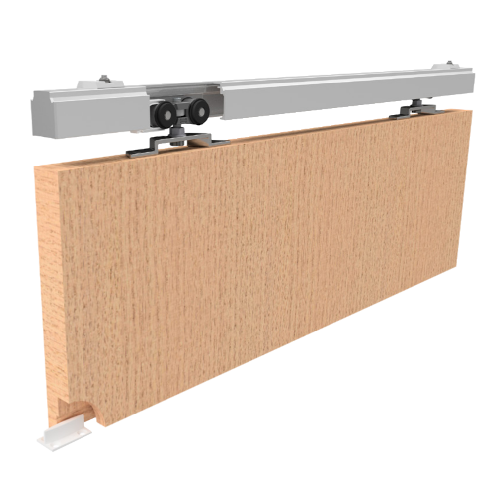The Henderson Husky 120 Pro is a straight sliding door hardware system for wooden and metal doors and is ideal for creating room dividers. It has low initial friction, is suitable for doors up to 120kg and is easy to install. Kit Contains Anodised aluminium track with mounting holes for soffit (ceiling) or face (wall) installation Hangers Easy access apron plate Wall brackets End caps Rail stop and clip stop Plastic guide Assembly instructions