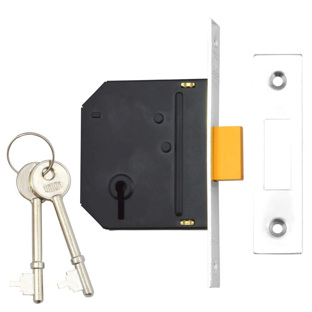 The Era range of 3 lever mortice locks is considered to be a low cost solution which offers added security for both internal doors and outside applications such as sheds. Two numbered keys with over 36 variations are supplied together with these deadlocks, whose bolts are easily reversible.