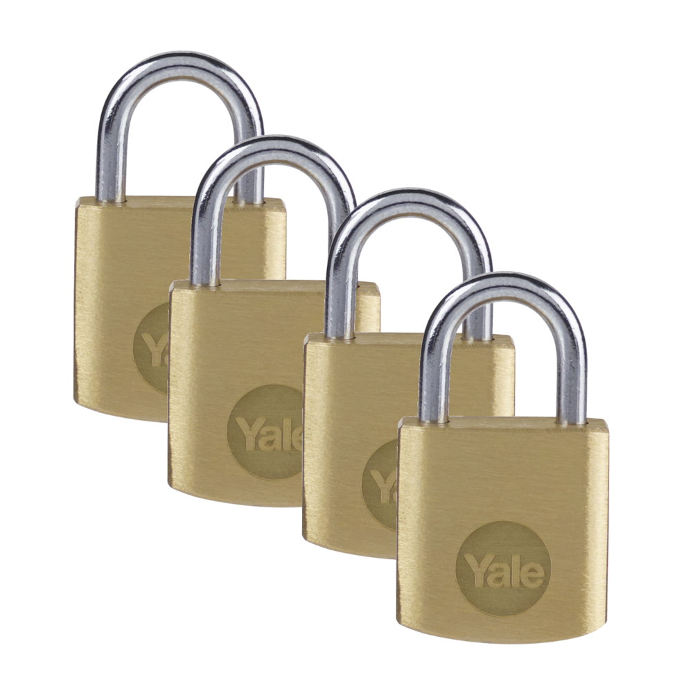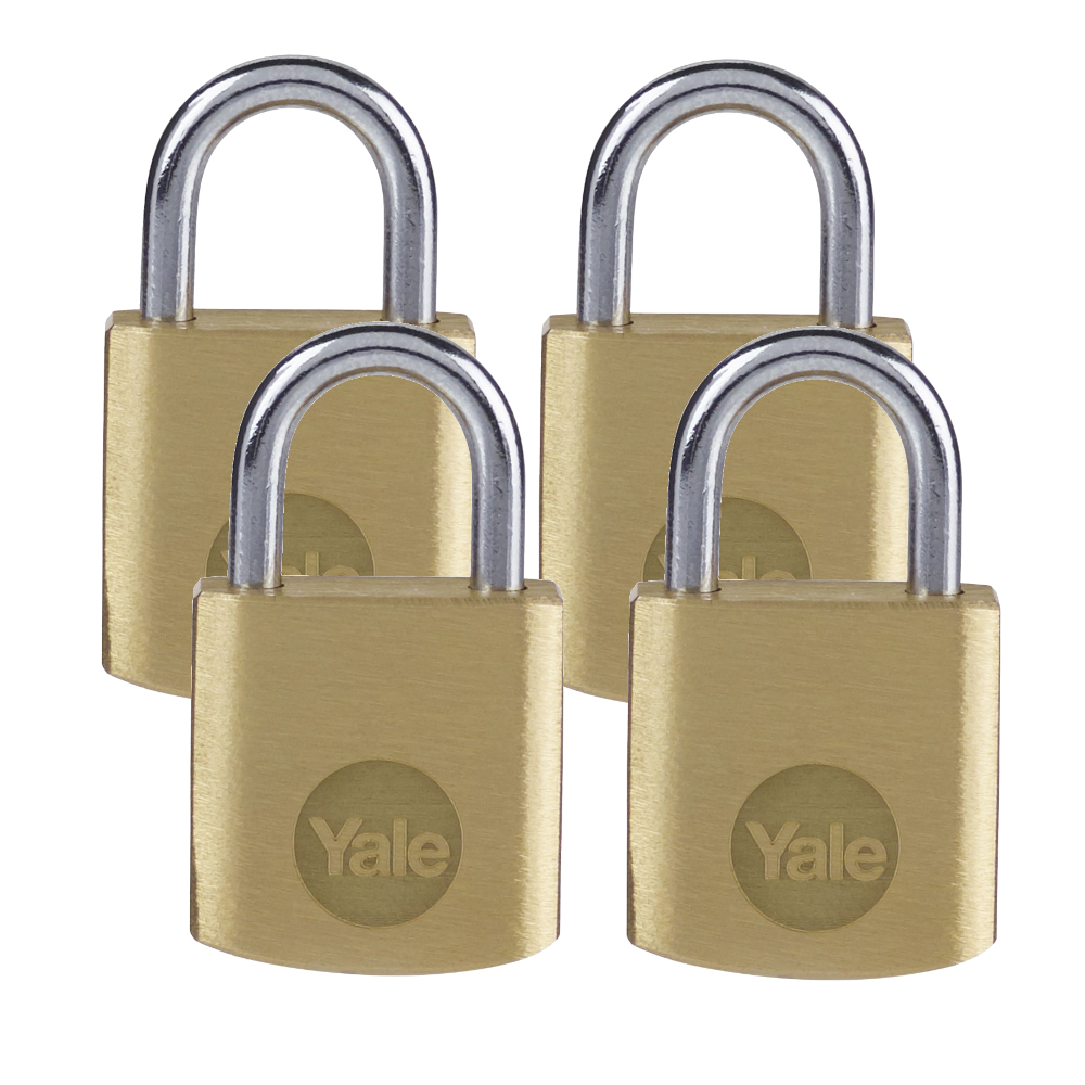 The YALE Y110JB Brass Padlock is supplied in a pack of 4. With a solid brass body and black protective cover, the padlock is designed for indoor use. The lock features a snap locking shackle, locking without the key, and is supplied with 3 keys for unlocking.