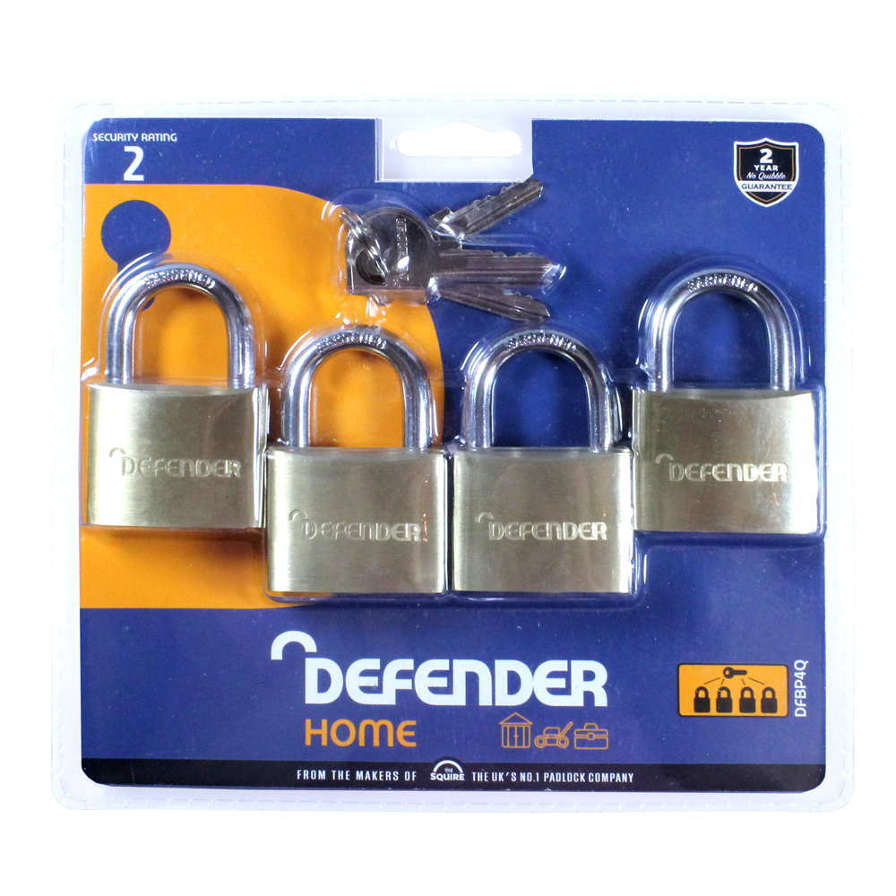 The Defender range of Brass Open Shackle Padlocks is available in a range of body and pack sizes. Double locking with a hardened steel shackle, these padlocks feature a solid brass body and they are supplied with 2 keys.