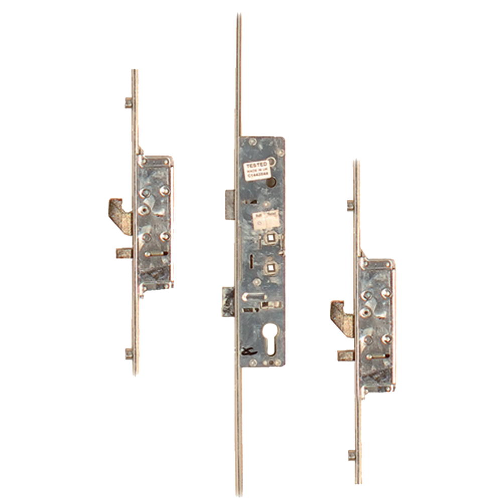 The LOCKMASTER Lever Operated Latch & Deadbolt is a full multipoint lock unit with 2 hooks, 2 anti-lift pins and 4 rollers. It features a Euro profile centre case with a 16mm faceplate and twin spindle. The unit can be locked by using the lift lever to engage the locking mechanisms, after which a turn of the full cylinder locks it up. One full turn of the key followed by a push down on the lever unlocks the unit.